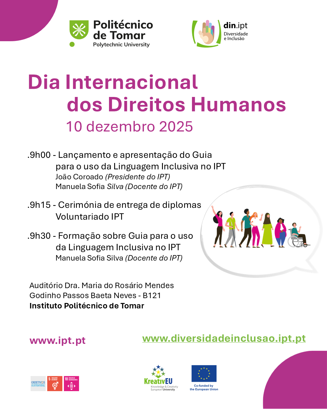 O Politécnico de Tomar promove, no próximo dia 10 de dezembro, assinalando o Dia Internacional dos Direitos Humanos, a apresentação pública do Guia para o Uso de Linguagem Inclusiva, seguida de uma ação de formação, dirigida a todas as pessoas colaboradoras da instituição.