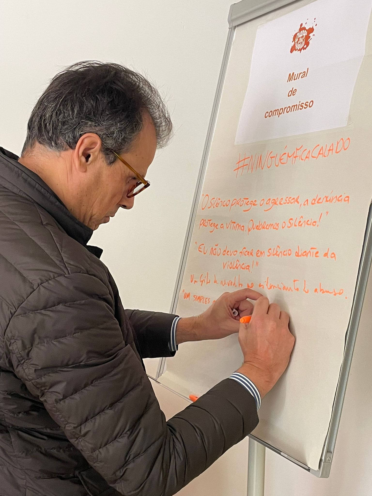 Tratou-se de um convite à reflexão, à consciência e à responsabilidade coletiva sobre esta causa, tendo cada um registado o seu compromisso para a eliminação da violência contra as mulheres.