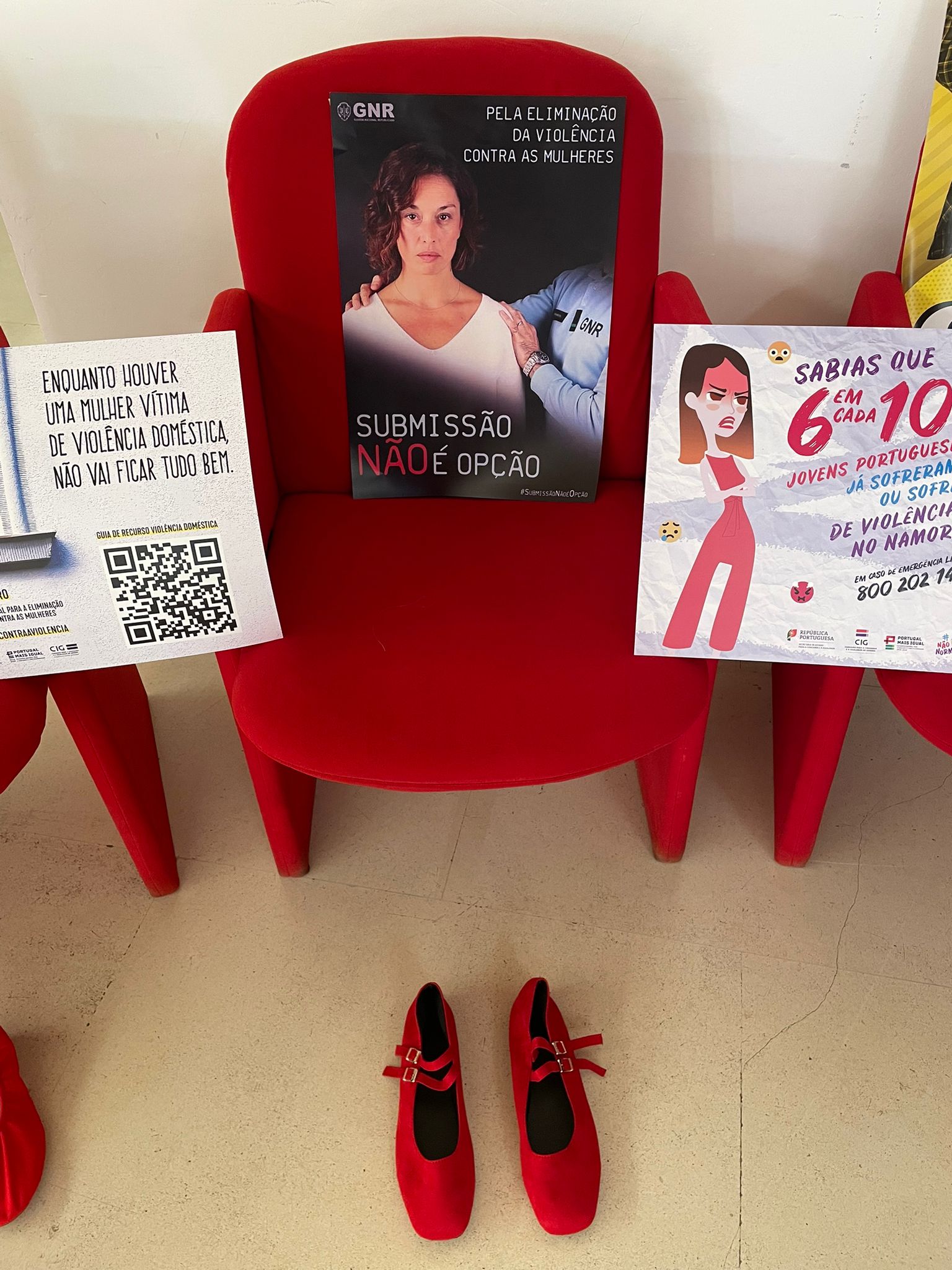 Os sapatos vermelhos simbolizam a ausência, os passos que as mulheres deixaram de dar.