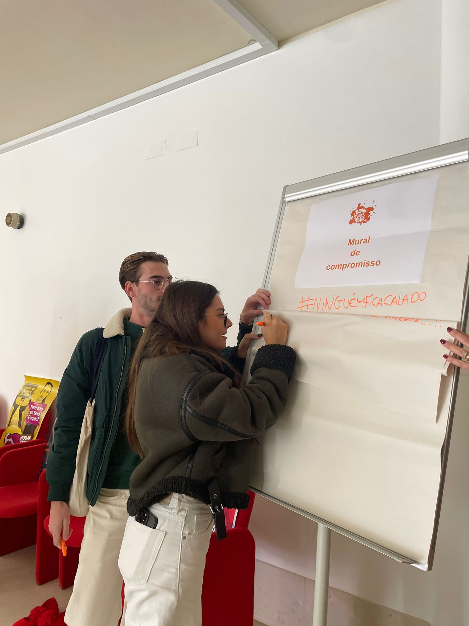 Tratou-se de um convite à reflexão, à consciência e à responsabilidade coletiva sobre esta causa, tendo cada um registado o seu compromisso para a eliminação da violência contra as mulheres.